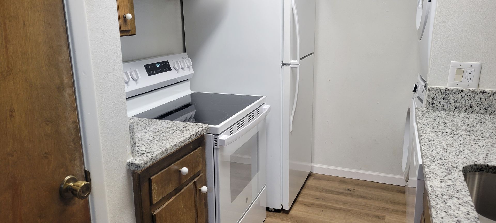 This large two bedroom condo features a fully equipped kitchen including updated appliances including stove, refrigerator, dishwasher and full size washer and dryer. The kitchen features granite countertops. The paint and flooring in the living area features solid surface flooring. A single garage with electric opener, all the lawns are maintained by the homeowner association, total electric with central heat and air cooling, power set up in garage for electric car charging, solid surface flooring in living area, kitchen, and dining area. No pets allowed.